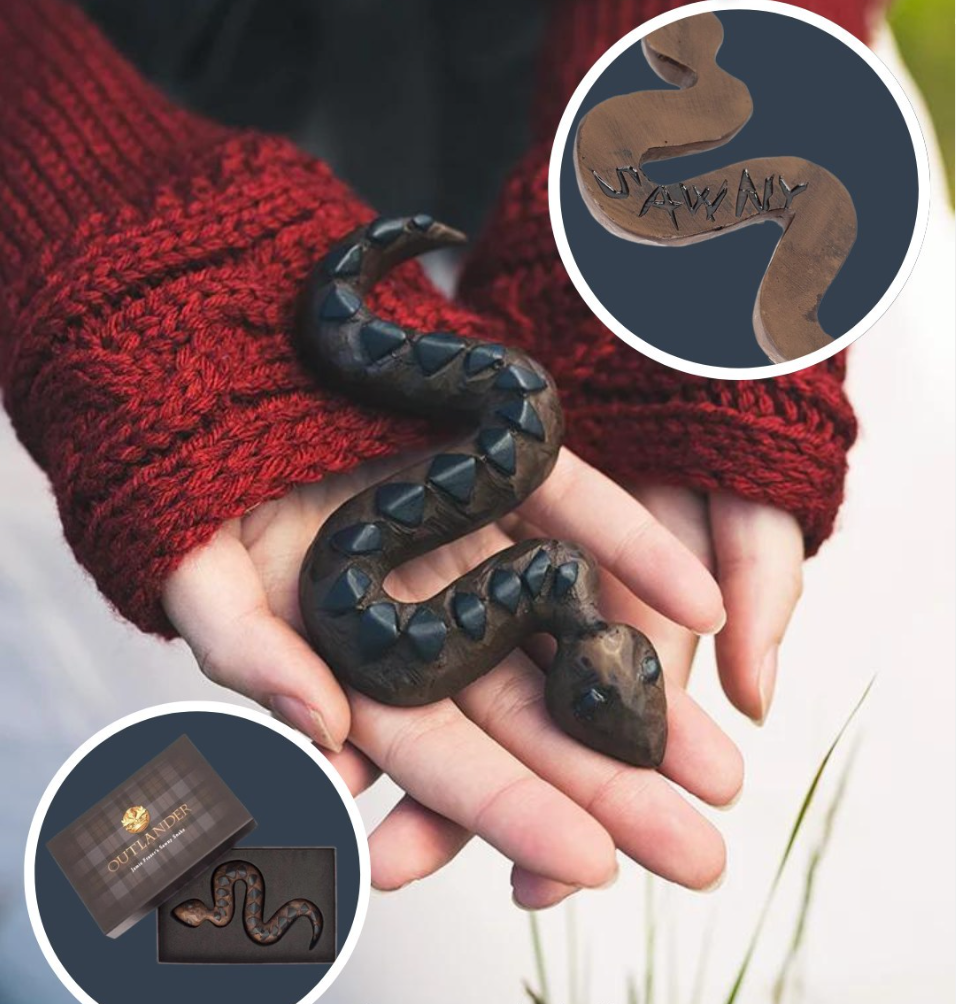 Made of resin and nestled in a foam-lined soft touch tartan gift box embossed with the Outlander logo. Moulded from a screen-accurate replica of Jamie Fraser’s Sawny Snake, it has the same authentic chiseled appearance. A perfect gift for any Jamie fan, this is truly a piece to cherish!